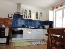 Zum Haus gehört noch ein schöner sonniger Garten mit Terrasse, Obstbäumen und Beerensträuchern, wo man richtig ausspannen kann. Für Kinder gibt es eine Schaukel, ein Trampolin und einen Sandkasten. Zum Haus gehören Parkmöglichkeiten für 4 PKW.